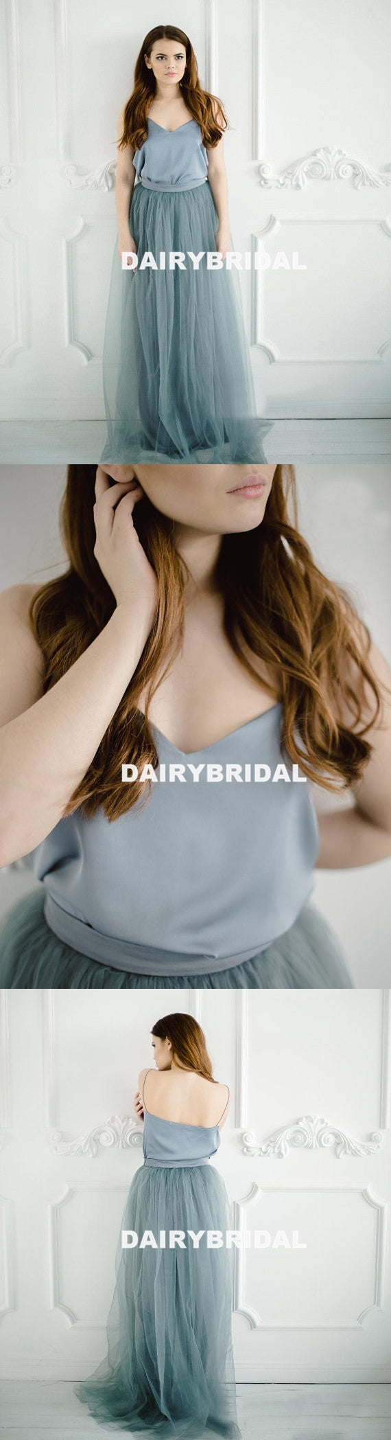 Charming Spaghetti Straps Two Pieces Tulle A-Line Backless Bridesmaid Dress, D1180 Charming Spaghetti Straps Two Pieces Tulle A-Line Backless Bridesmaid Dress, D1180