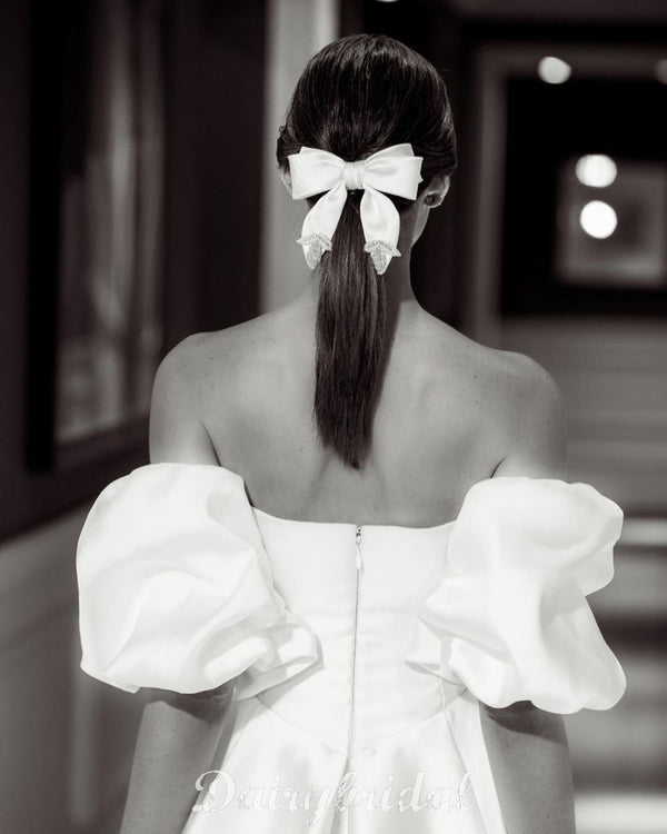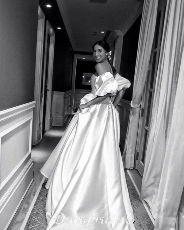 Elegant A-line Satin Floor-Length Straight Neckline Wedding Dresses, FC4022