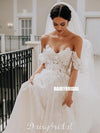 Off Shoulder Lace A-line Backless Tulle Long Wedding Dress, FC4855 Off Shoulder Lace A-line Backless Tulle Long Wedding Dress, FC4855