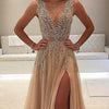 A-Line Deep V-Neck Sleeveless Charming Tulle Affordable Side Split Prom Dresses with Beading and Sweep Train,220043 A-Line Deep V-Neck Sleeveless Charming Tulle Affordable Side Split Prom Dresses with Beading and Sweep Train,220043