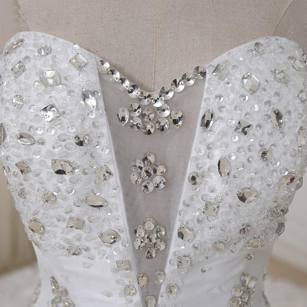 Hot Sale Luxury Soft Tulle Hand Made Sweetheart Sequin Rhinestone backless Wedding Dresses with Long Train,220058