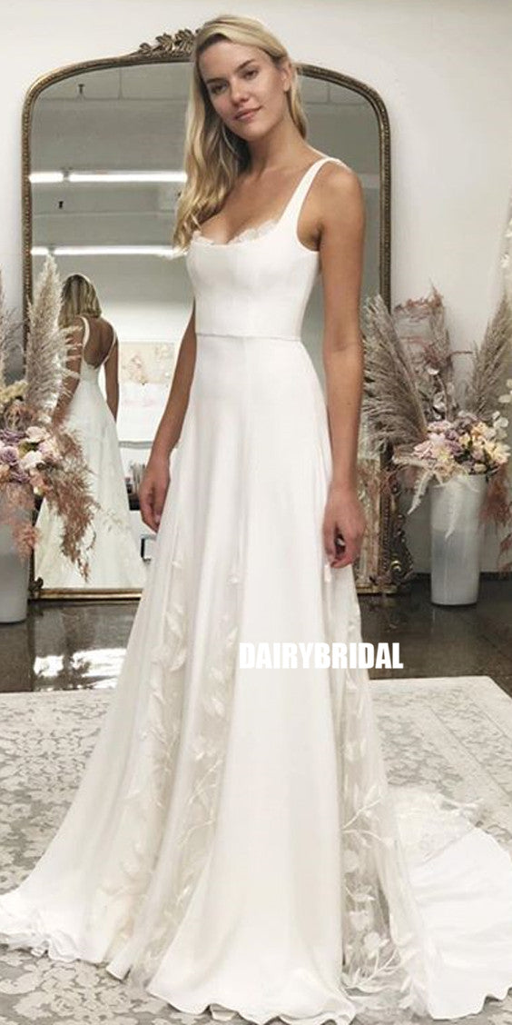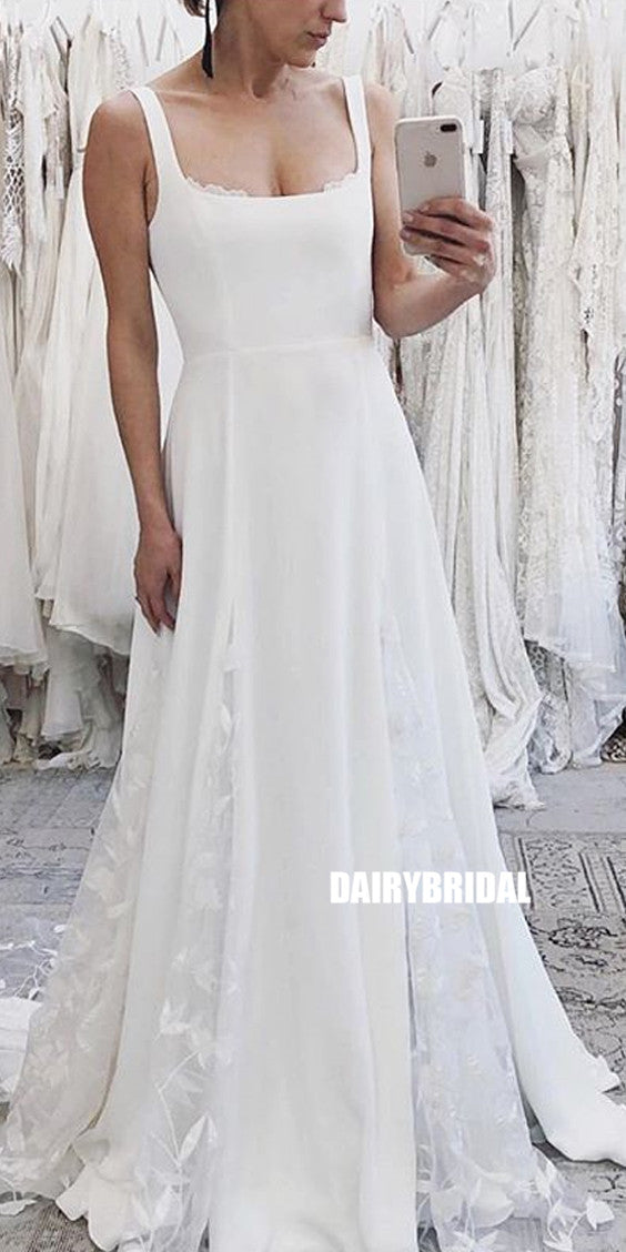 Charming A-line Square Neckline Lace Backless Wedding Dresses, FC2682