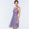 Short Bridesmaid Dress, Tulle Bridesmaid Dress, Sleeveless Bridesmaid Dress, A-Line Bridesmaid Dress, One-Shoulder Bridesmaid Dress, Knee-Length Bridesmaid Dress, LB0525