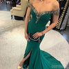Off Shoulder Mermaid Jersey Slit Beaded Backless Prom Dress, FC1431