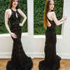 Sexy Black Lace Prom Dress, Beaded Open-Back Mermaid Prom Dress, D836