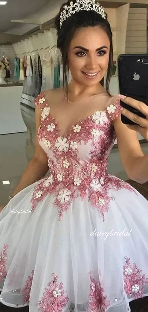 Cap Sleeves Lace A-line Charming Homecoming Dress, HC010 Cap Sleeves Lace A-line Charming Homecoming Dress, HC010