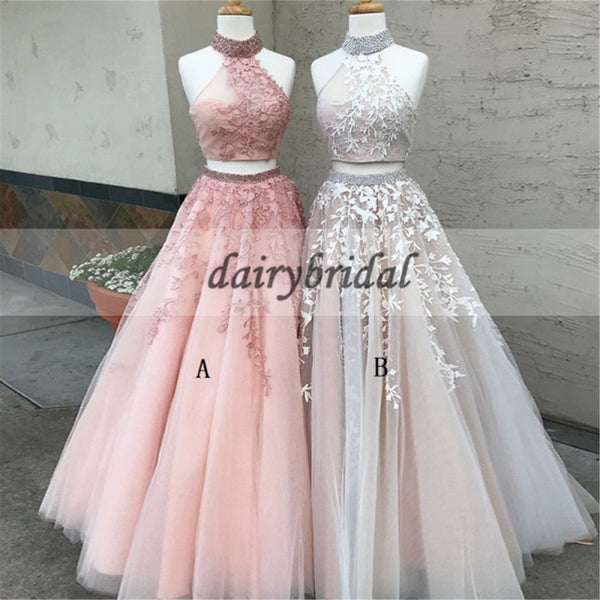 Two Pieces Tulle Applique Prom Dress, Sleeveless Open-Back Prom Dress, A-Line Beaded Prom Dress, D134 Two Pieces Tulle Applique Prom Dress, Sleeveless Open-Back Prom Dress, A-Line Beaded Prom Dress, D134