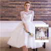 Cute Short White Lace Round Neck Half Sleeve See Through Tulle Wedding Dresses, WD0145 Cute Short White Lace Round Neck Half Sleeve See Through Tulle Wedding Dresses, WD0145