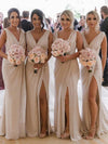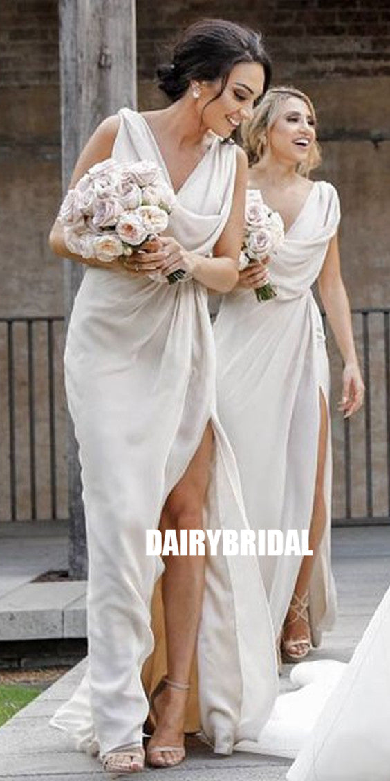 Chiffon V-neck Simple Pleated Long Slit Bridesmaid Dress, FC2389 Chiffon V-neck Simple Pleated Long Slit Bridesmaid Dress, FC2389